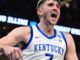 The short clip, posted without any caption, shows star forward Jalen Rivers hitting a half-court shot in practice — but with a twist: the lights inside the Joe Craft Center were turned off, save for a single spotlight on the basket. As the ball swished through, teammates erupted, and Coach Mark Pope could be seen pumping his fists in celebration.